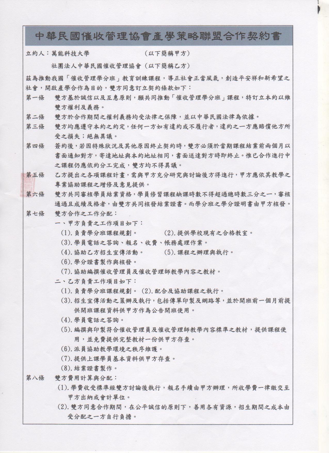 中華民國催收管理協會與萬能科技大學產業策略聯盟簽約